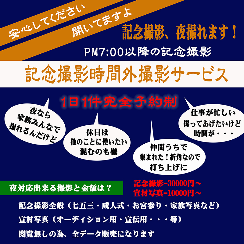 埼玉県 八潮市 写真スタジオ 記念撮影 卒業卒園 入園入学 七五三 成人式 お宮参り おもしろ写真 コスプレ 証明写真 肖像・終活 宣材写真 オーディション写真 商品撮影 出張撮影 写真プリント コンテスト用プリント ライトブラスター
